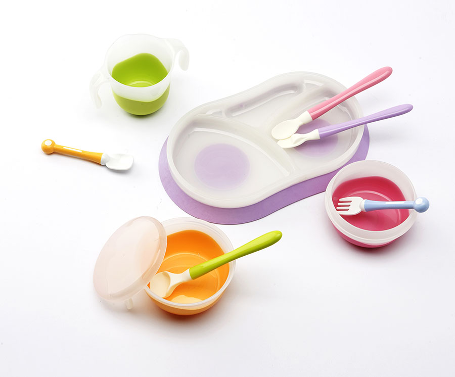 六个月宝宝添加辅食注意事项六:宝宝餐具要固定专用。