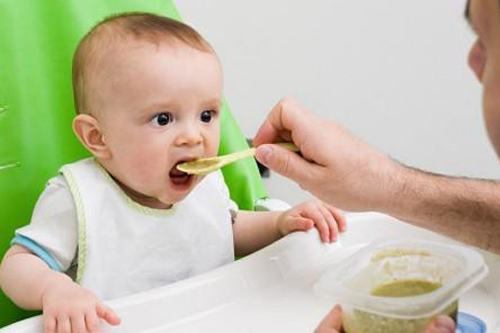 家长在喂婴儿辅食时,要有耐心,还要想办法让孩子对食物产生兴趣。